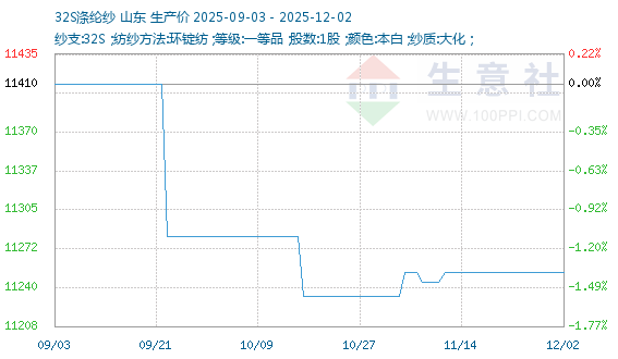 12月2日生意社32S涤纶纱基准价为11253.33元/吨