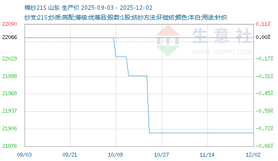 12月2日生意社人棉纱基准价为17275.00元/吨