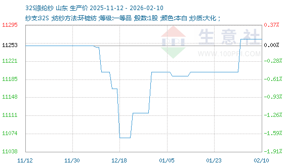 2月6日生意社32S涤纶纱基准价为11266.67元/吨