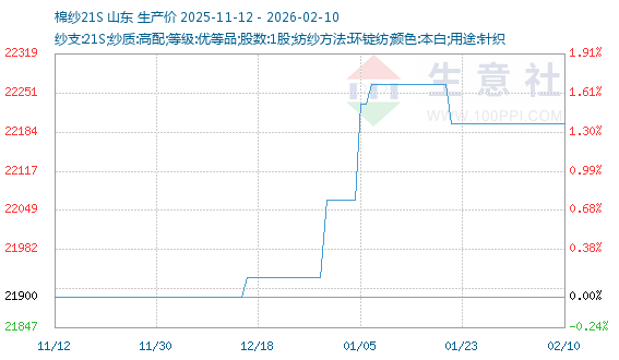2月10日生意社棉纱21S基准价为22200.00元/吨