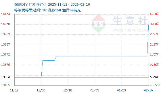 2月10日生意社锦纶DTY基准价为13760.00元/吨
