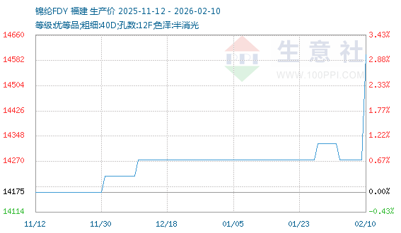2月10日生意社锦纶FDY基准价为14275.00元/吨