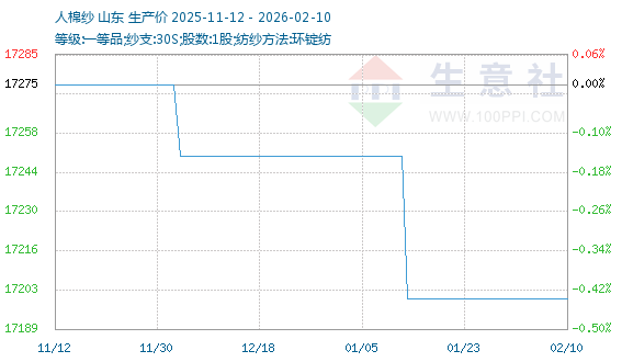 2月3日生意社人棉纱基准价为17200.00元/吨